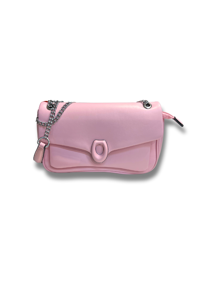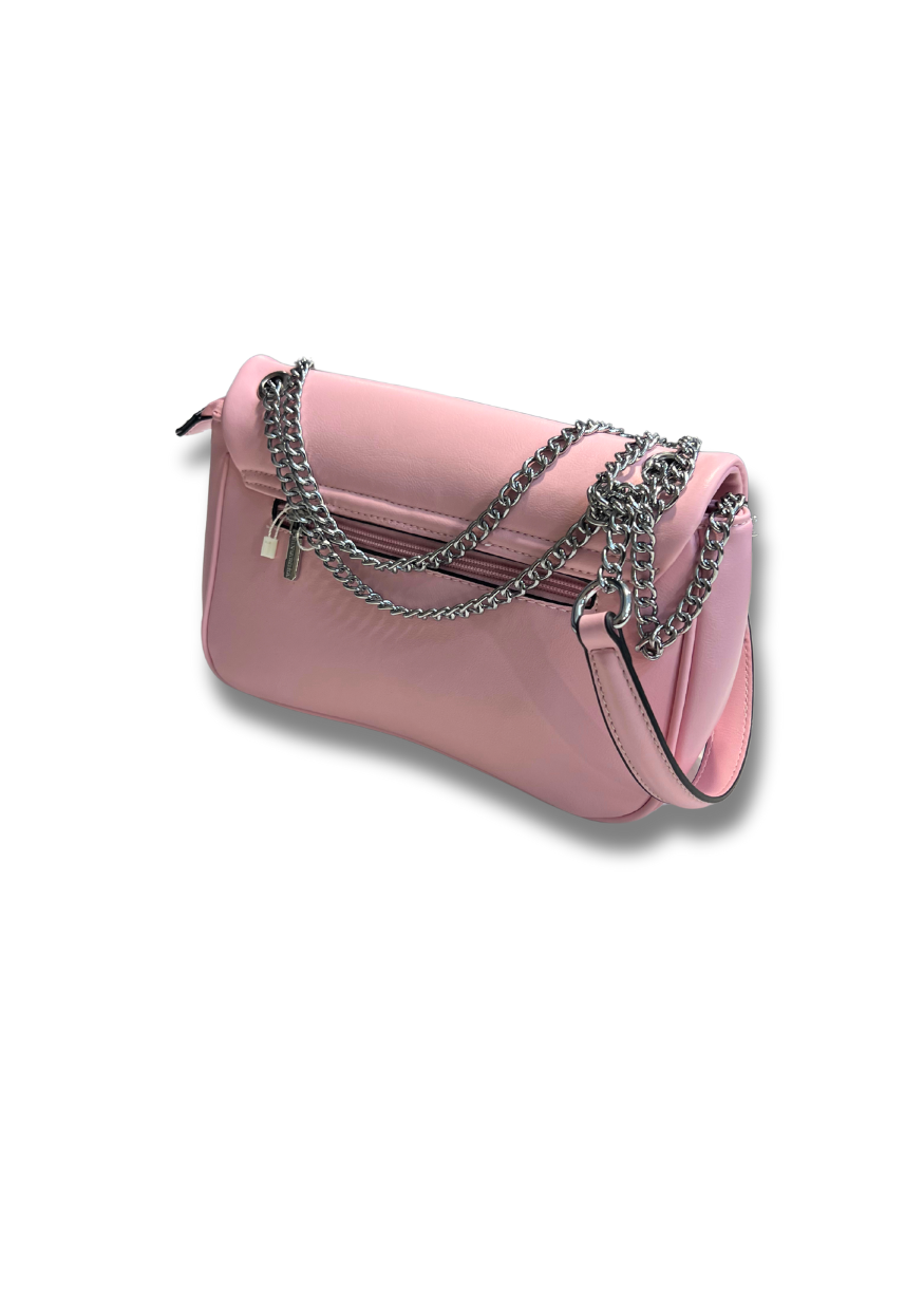 Poșetǎ contemporanǎ cu design unic din piele ecologicǎ.