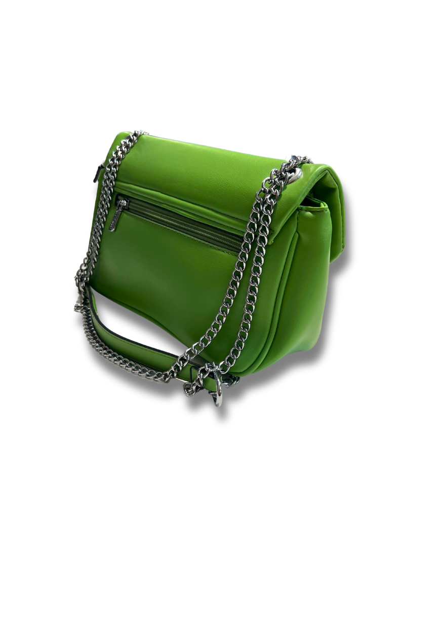 Poșetǎ contemporanǎ cu design unic din piele ecologicǎ.