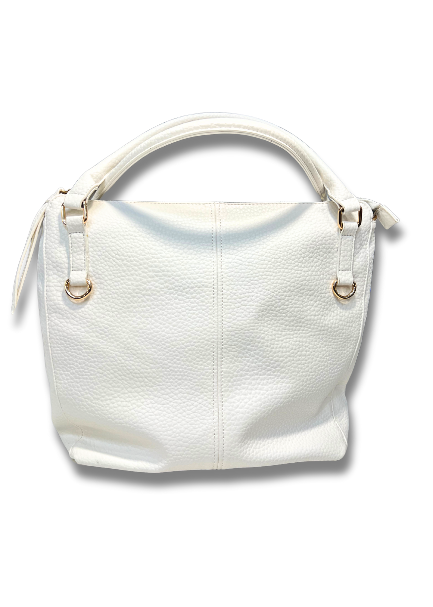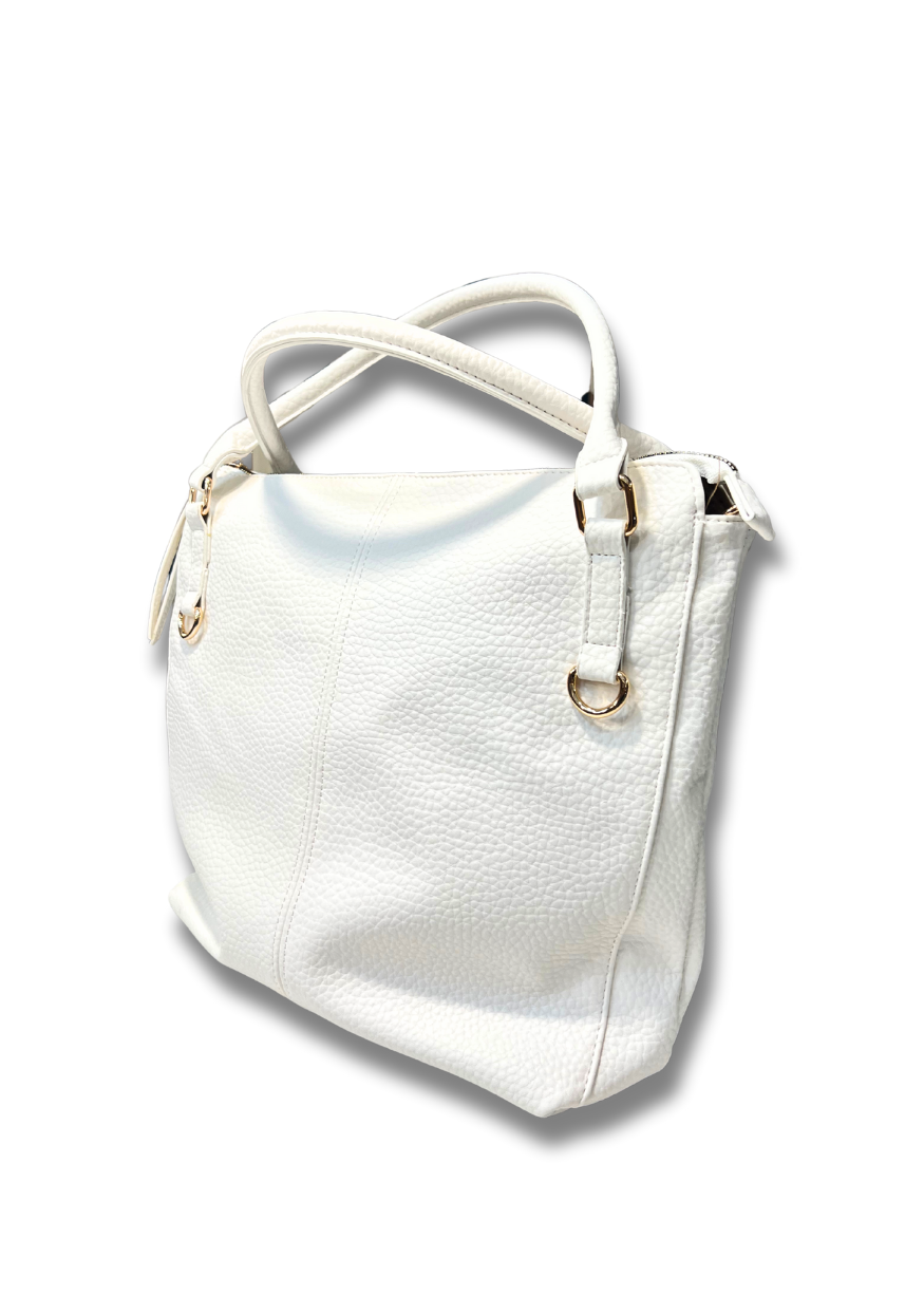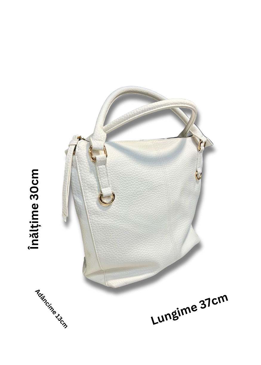 Poșetǎ contemporanǎ cu design unic din piele ecologicǎ.